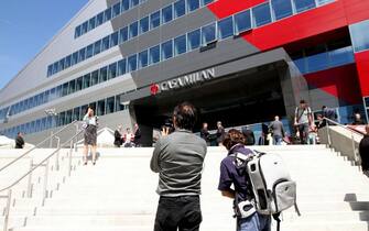 La facciata della nuova, avveniristica sede rossonera a Milano -