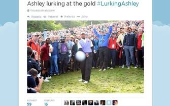 Il Cole "guardone", nella tipica posa dell'anziano che guarda i lavori, finisce dappertutto: qui osserva da vicino Tiger Woods -
