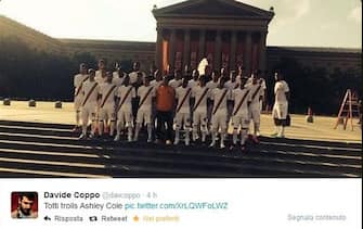 A due giorni dall'invenzione di Ashley, capitan Totti si fa beffe di lui imitandolo in una foto di squadra a Philadelphia -