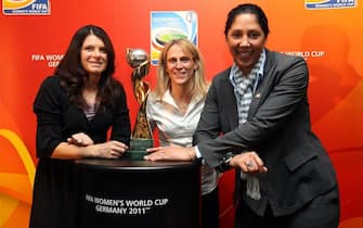 Mia Hamm, Kristine Lilliy e Steffi Jones con la Coppa Femminile del Mondo di Germania 2011 -