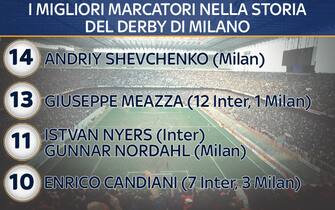 LA FOTOGALLERY. Il miglior marcatore della stracittadina milanese è l'ucraino con 14 centri, seguito da Meazza e Nordahl. Ma negli ultimi anni i veri mattatori di Milan-Inter sono stati Milito, Ronaldo, Ibrahimovic e Kakà. L'ALBUM
