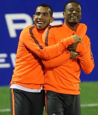 Carlos Tevez scherza con Patrice Evra: i due sono stati compagni di squadra già ai tempi del Manchester United -