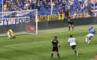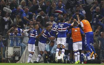SETTEMBRE - Proprio Gabbiadini decide il derby contro il Genoa. Quando manca poco al 90' il mancino calcia una punizione velenosa che si infila in porta, per la gioia sfrenata di Ferrero -