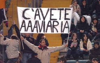 Tra i grandi classici, anche gli striscioni. Nel 2005 la Lazio è in difficoltà. I tifosi romanisti "consolano" i cugini, a rischio retrocessione...