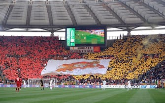 I tifosi della Roma giocano spesso con i colori sociali, giallo e rosso, per creare un effetto spettacolare. Come questa del 2010 -