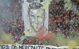 Tra le gigantografie esposte in curva Sud non poteva mancare quella di Francesco Totti -