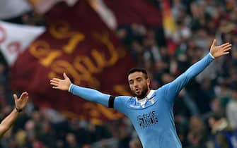 Felipe Anderson, protagonista della gara, esulta in occasione del suo 2-0 mostrando la scritta "Je suis Charlie" -