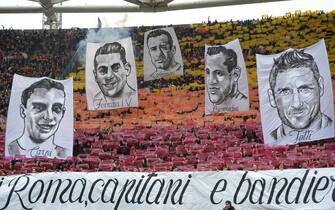 Totti, Bernardini, Amadei: sono alcuni degli storici capitani romanisti protagonisti della coreografia della curva Sud -
