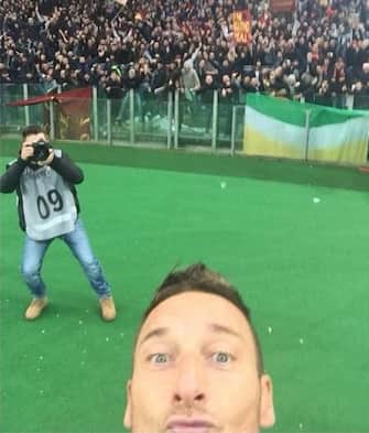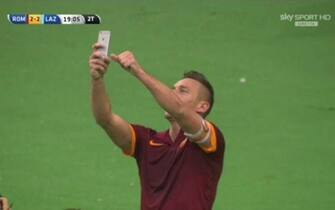 Il clamoroso selfie in campo di Totti dopo il suo secondo fantastico gol nel derby -