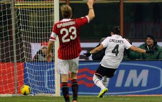 Caceres, poi, ama anche segnare alle milanesi: l'8 febbraio 2012, ad esempio, segnò una doppietta contro il Milan a San Siro, la Juventus vinse 2-1 in trasferta -
