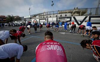Guidati dal tecnico Papagni, e dall'intero staff tecnico, i giocatori hanno effettuato una seduta atletica di una mezz'ora, sotto l'occhio attento di un centinaio di tifosi che hanno risposto alla richiesta di solidarietà lanciata dalla squadra -