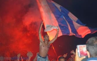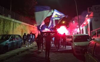 La festa dei tifosi per le vie della città, in attesa dell'arrivo della squadra in Piazza Stazione -