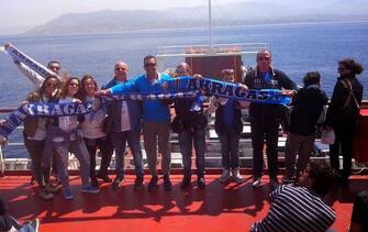 I tifosi dell'Akragas in viaggio sul traghetto per raggiungere Villa San Giovanni. Incessante il loro sostegno per tutta la stagione -