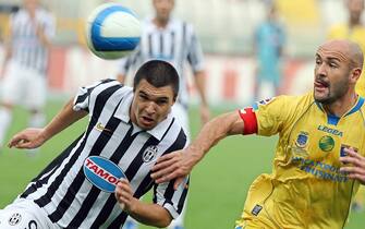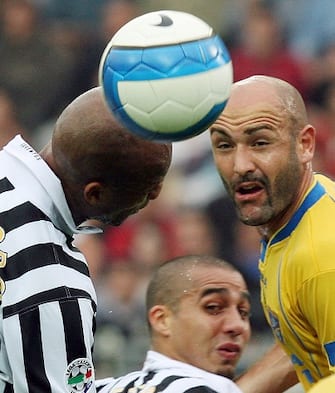 Con Del Piero in attacco in quella stagione, oltre a David Trezeguet, c’era anche Valeri Bojinov, qui mentre contende la palla a Paolo Antonioli, allora difensore del Frosinone –