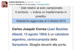Lo stesso profilo ufficiale della Sampdoria utilizza il verbo più adatto in casi come questo: Correa non si è semplicemente "mangiato" un gol, ma se lo è proprio "divorato" -