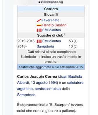 Subito dopo il clamoroso errore, la pagina wikipedia di Correa è stata presa d'assalto e ha subito diverse modifiche. Eccone una tra quelle più "riferibili" -