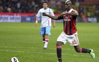 Mario Balotelli, arrivato a gennaio 2013, trascina il Milan a suon di gol e di rigori a qualificarsi per la Champions League