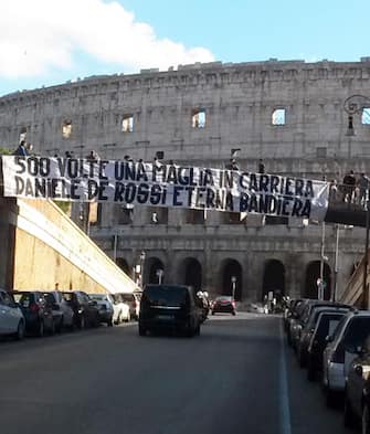 Ecco l'omaggio della sua città a poche ore dal fischio d'inizio della gara contro l'Empoli: un mega striscione issato vicino al Colosseo -
