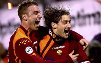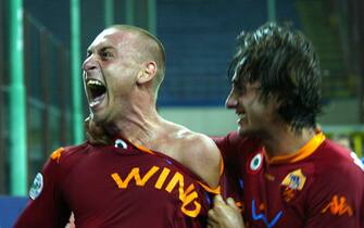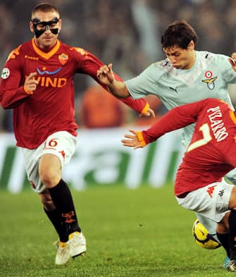 Presto diventa un simbolo della Roma: eccolo prima di un derby sfidare Oddo, che sarà suo compagno in Nazionale al trionfale Mondiale 2006 -