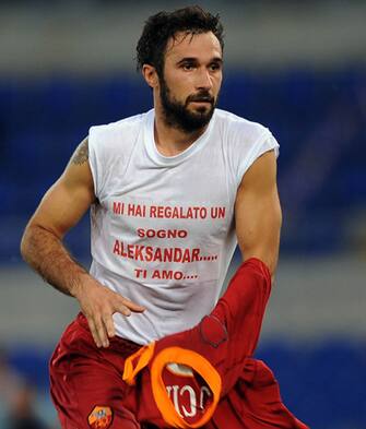 Il 7 novembre 2010, Vucinic segna nel finale il rigore del definitivo 2-0 per la Roma. Anche qui spogliarello e maglia celebrativa dedicata al suo amore –