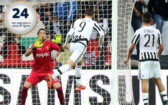Sulle 28 reti totali, la Juve ne ha segnate l'85% dentro l'area di rigore. Certo, poi ci sono i tiratori da fuori come Pogba e soprattutto Dybala... -
