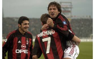 Il 28 maggio del 2003 all'Old Trafford di Manchester sarà proprio "Sheva-occhi di tigre" a calciare il rigore decisivo a Gigi Buffon nella finale di Champions tutta italiana contro la Juventus. Tre giorni più tardi la "ciliegina" della Coppa Italia -