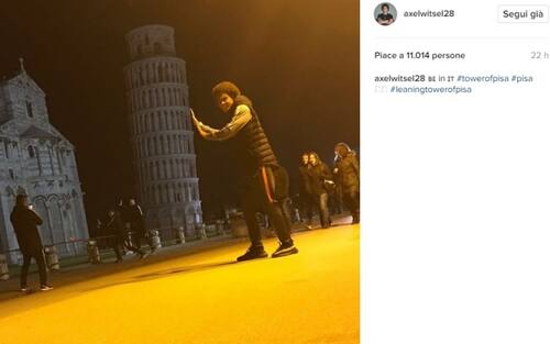 Immancabile la foto che chiunque avrà desiderato o scattato almeno una volta nella sua vita. Ecco Pato mentre prova a raddrizzare la Torre... Ah no, sembra ce l'abbia fatta davvero...