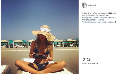Silvia Slitti, moglie del bomber e leader del Verona Giampaolo Pazzini, riesce a coniugare vacanze e lavoro (foto da Instagram) -