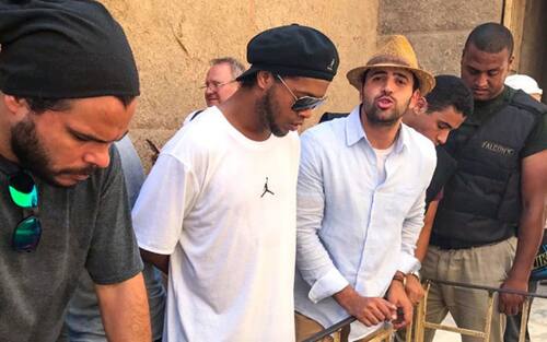 Dinho e la Sfinge. Il brasiliano si trova in Egitto per promuovere la campagna "Tour ‘n’ Cure" che raccoglie fondi per curare l'epatite C