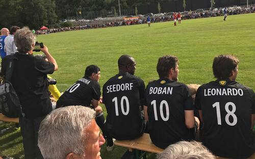 Oltre a Maradona, in questa foto di gruppo si riconoscono Evaristo Beccalossi, Pietro Wierchowood, Pierluigi Collina, Christian Abbiati, Dida, Leonardo, Gattuso, Paolo Maldini, Ciro Ferrara, Demetrio Albertini, Ivan Cordoba...