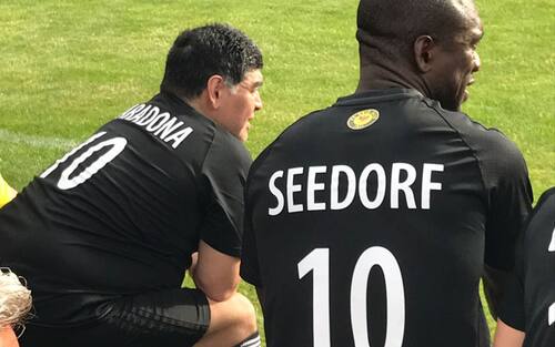Diego Armando Maradona in campo, con il numero 10 sulle spalle. Non è un miraggio: scorri tutte le foto e scopri i protagonisti del match benefico organizzato dal presidente della Fifa Gianni Infantino a Briga. Ingresso libero, chi vuole può lasciare un'offerta e godersi lo spettacolo