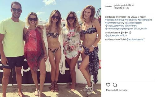 Eccoli insieme durante l'evento benefico di footvolley che si è svolto dal 15 al 30 luglio ai Bagni Fantini di Cervia. Con loro la modella svedese Astrid Ericsson, madrina della manifestazione (foto da Instagram) -