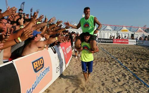 Bobo portato in trionfo al termine della manifestazione che ha trascinato a Cervia oltre 20mila persone (foto OneNine Images) -