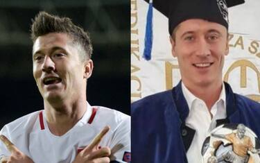 Dopo aver portato la Polonia al Mondiale di Russia 2018, l’attaccante del Bayern Monaco si laurea all’università di Varsavia con una tesi su se stesso. Lui in giacca e cravatta, i professori con la maglia della nazionale polacca