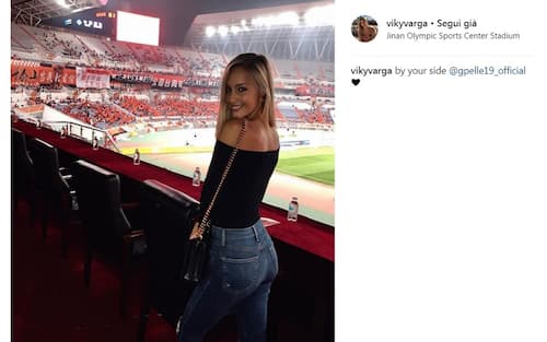 Con lui è volato in Cina anche l'incantevole Viky, che non perde una partita del suo Graziano (foto da Instagram)
