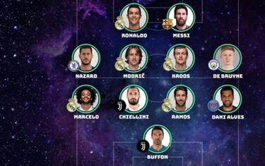Una squadra stellare, un undici davvero da stropicciarsi gli occhi e che (molto probabilmente) vincerebbe a mani basse qualsiasi competizione europea e non. Si tratta della Squadra dell'Anno 2017, scelta dai lettori di UEFA.com, che si sono sbizzarriti a votare i propri calciatori ideali per una formazione da sogno. Sono stati 8.779.639 i voti di fan arrivati da tutto il mondo, ben 1.6 milioni in più rispetto allo scorso anno. In una squadra dominata da calciatori provenienti dalla Liga, ben sei, spiccano anche due giocatori del campionato italiano, Gianluigi Buffon e Giorgio Chiellini. Cristiano Ronaldo, che forma con Messi la coppia d’attacco di questo spregiudicato 4-4-2, è stato selezionato per la dodicesima volta, l’ennesimo record di una carriera straordinaria. Il giocatore che ha ricevuto invece più voti è risultato essere Sergio Ramos, capace di accaparrarsi oltre 588.315 preferenze. Ecco la formazione nel dettaglio: