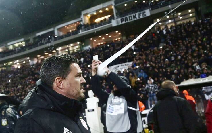 Grecia, Paok-Olymiacos non si gioca: l'allenatore viene ferito da un rotolo di carta igienica