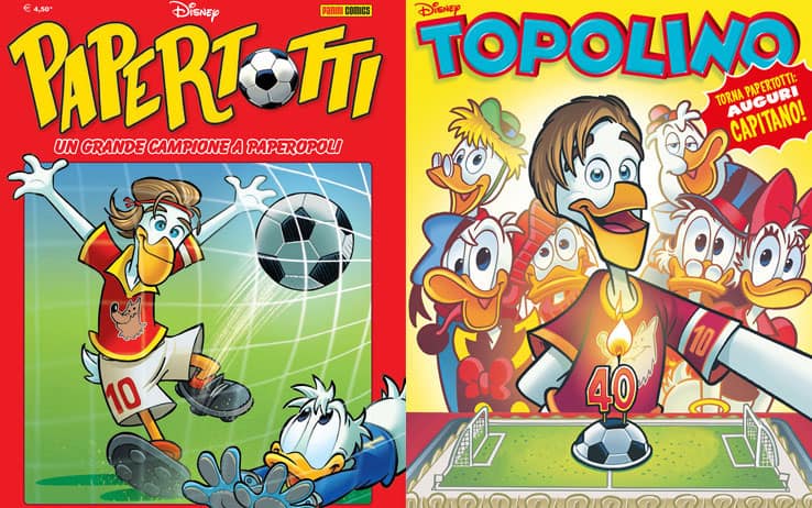 Probabilmente il calciatore paperizzato meglio riuscito, quello che ha avuto più successo. Perché Totti è entrato nella vita della gente con le sue giocate e il suo modo di essere, i colpi di classe e l'autoironia, la fedeltà a una sola maglia, i gol da rivedere all'infinito, le cadute e le rinascite. Totti è linguaggio universale perché tutti conoscono Totti. E se dici "cucchiaio" è inevitabile l'accostamento. Ecco dunque la storia di come nasce il gesto tecnico a lui più caro in "Papertotti e il segreto del cucchiaio", ma anche la copertina dedicata per i 40 anni, circondato da tutta la famiglia di paperi.