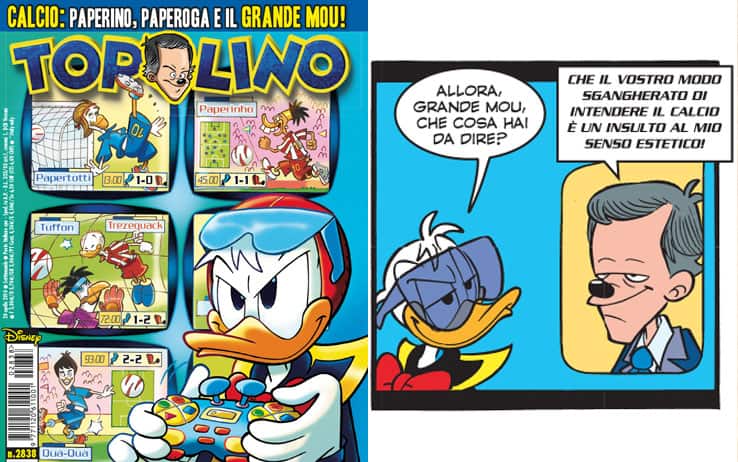 In Topolino è un allenatore dal grande "senso estetico". Un Mourinho guardiolizzato, più che paperizzato. Ma comunque "mito", nel senso di personaggio noto a chiunque, in ogni angolo della Terra. Risposta sempre pronta, quell'aria di superiorità che divide: o lo si ama o lo si odia, anche nel fumetto. Attenzione però alla copertina di quel numero contenente l'avventura del "grande Mou": ci sono chicche come un Paperinho con i dentoni in vista, il celebratissimo Papertotti ("vincitore" di ben tre copertine), Tuffon e Trezequack e l'elegante Qua-Quà.