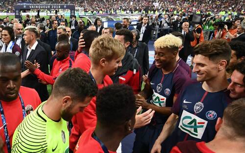 L'apice dello sportività è però nell'atto finale: Thiago Silva chiama in tribuna il capitano del Les Herbiers Sebastien Flochon per alzare la coppa. Dopo arriveranno anche le celebrazioni singole dei parigini, che alzano però il trofeo per la prima volta insieme agli sconfitti... usciti a testa altissima