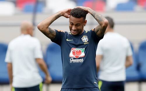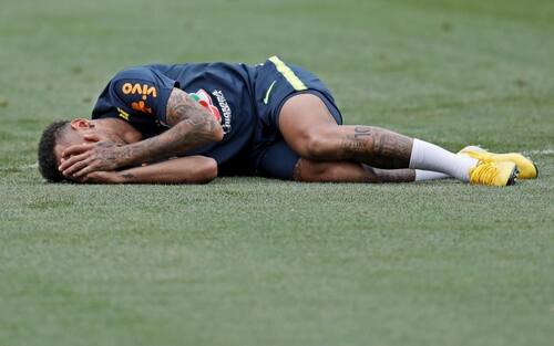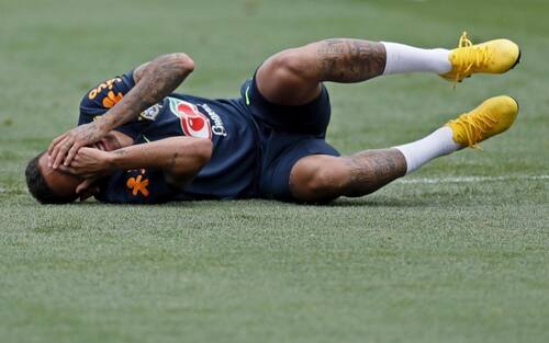 Dopo essere stato attaccato da più parti per la sua tendenza ad accentuare i colpi subiti, Neymar si è ripetuto in allenamento, davanti agli occhi divertiti dei compagni -