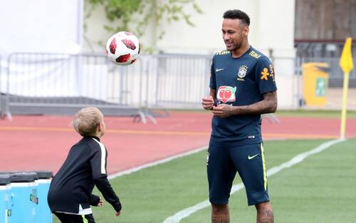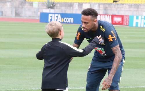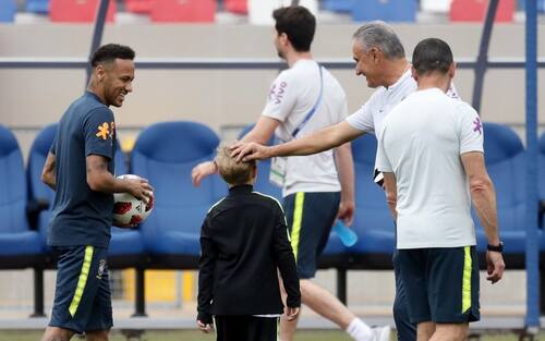 Clima disteso nel ritiro dei verdeoro in vista del quarto di finale contro il Belgio. Il numero 10 scherza dopo le critiche ricevute e poi gioca col figlio Davi Lucca