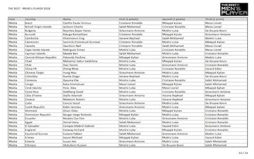 Chi ha votato Cristiano Ronaldo? E Leo Messi? Scopri tutti i voti dei capitani, selezionatori e della stampa -