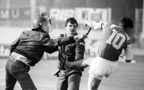 La "fotografia" di quel drammatico incontro è quella di Boban che sferra un calcio a un poliziotto per difendere un tifoso croato dalle manganellate. Rischia l'arresto e viene sospeso per 6 mesi