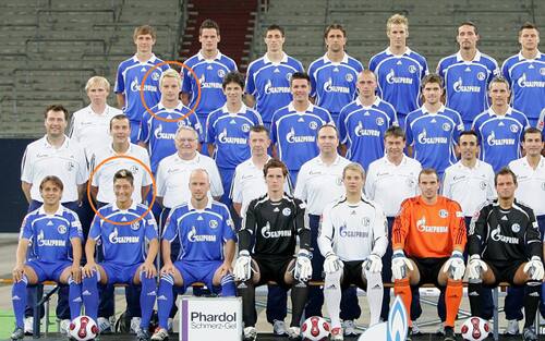 Mesut Ozil (in prima fila, secondo da sinistra) e un biondissimo Ivan Rakitic nella foto di squadra dello Schalke 04, stagione 2007-2008