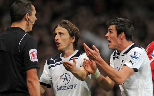 Facciamo un salto di 4 anni: in questa foto del 2010 Luka Modric e Gareth Bale protestano con l'arbitro per sostenere la stessa causa, quella del Tottenham. Ex compagni da Spurs, si sono ritrovati al Real Madrid