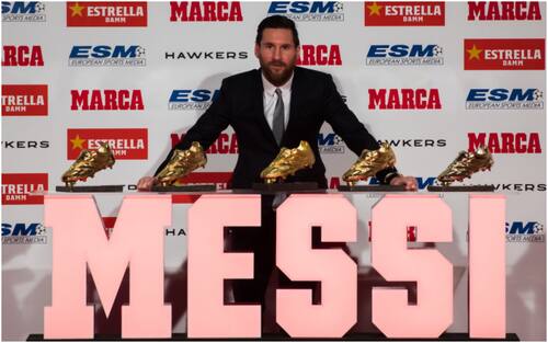 18 Dicembre - Leo Messi vince la sua quinta Scarpa d'Oro in carriera, premio reso possibile grazie ai 34 gol messi a segno nella passata edizione della Liga. Trofeo che permette all’argentino di staccare Cristiano Ronaldo e di stabilire un nuovo record: mai nessuno come lui -