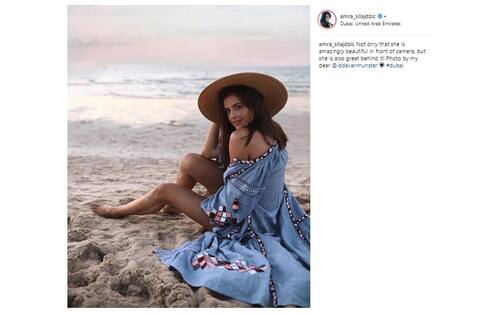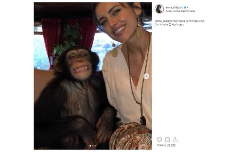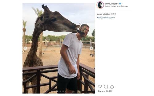 Il "collega" romanista Edin Dzeko invece ha preferito Dubai: ecco la moglie Amra alle prese con un orsetto... (foto da Instagram)