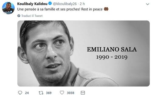 Emiliano Sala, il saluto del mondo del calcio: i messaggi di addio sui social