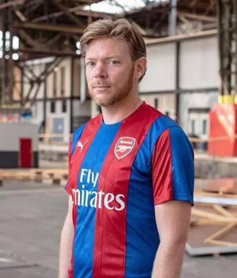 Ed ecco l'ideatore di queste opere, Floor Wesseling, che veste ovviamente una delle sue maglie